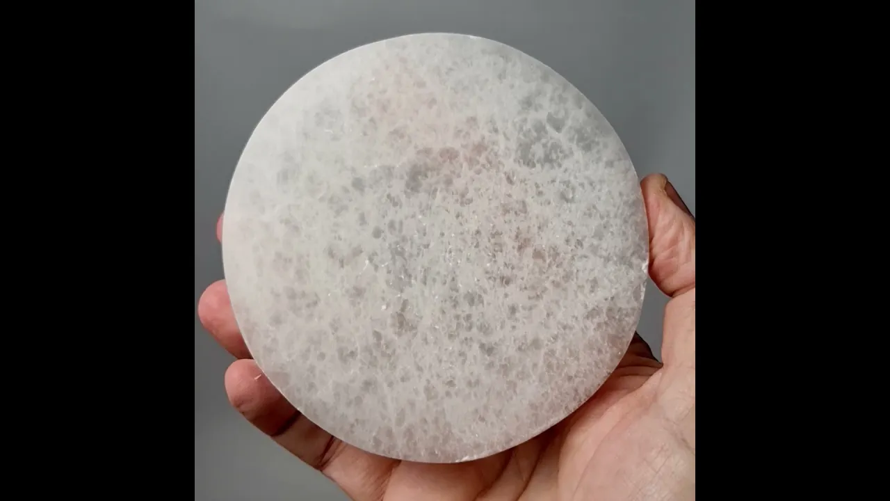 Круг из селенита изготовлен вручную и имеет небольшие погрешности в размерах и форме: немного отличаются диаметр и толщина. При необходимости мы сделаем небольшую видеодемонстрацию товара перед отправкой.